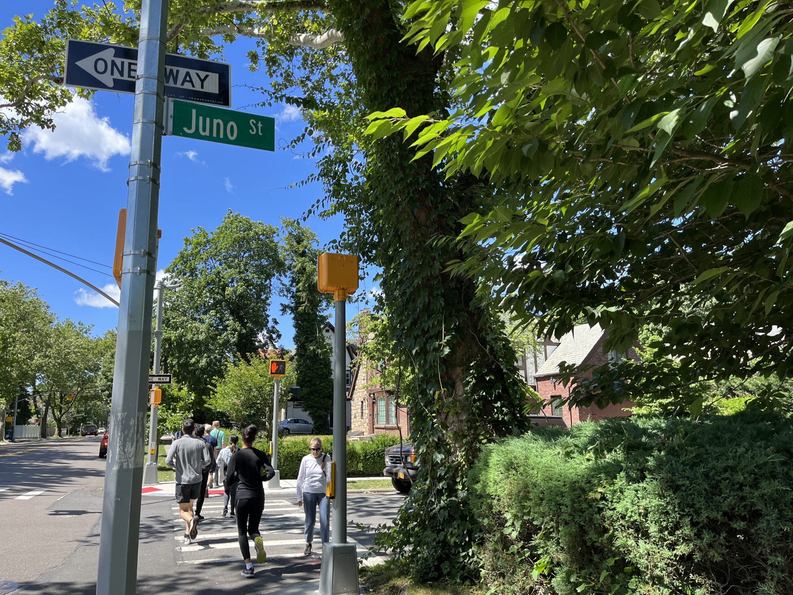 Several blocks along Juno Street starting at 71 Avenue westward has sewage a backup problem.