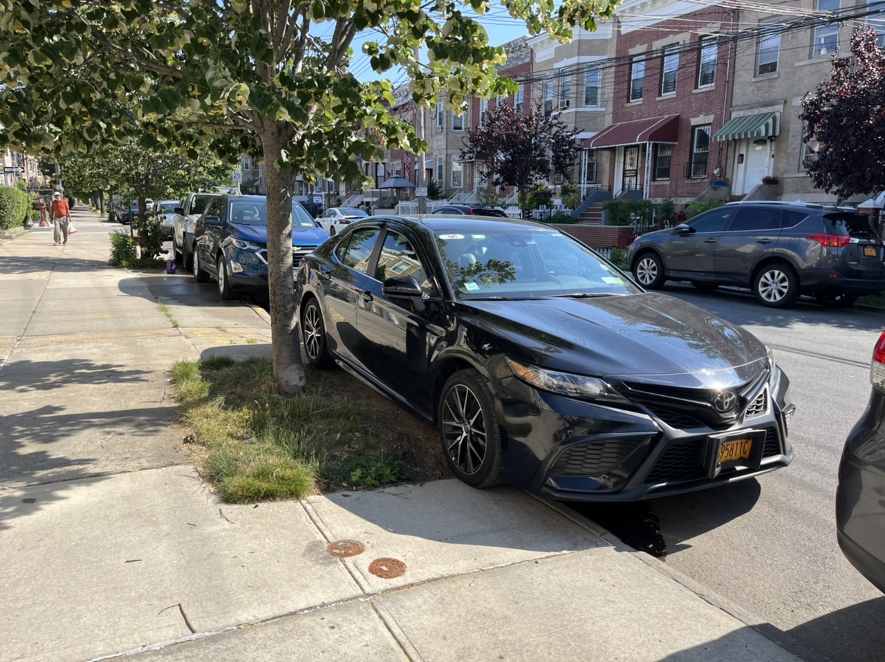 The street is not wide enough for two-way traffic. Cars would have a set of wheels parked on the sidewalk to avoid being side-swiped or hit which happens regularly.