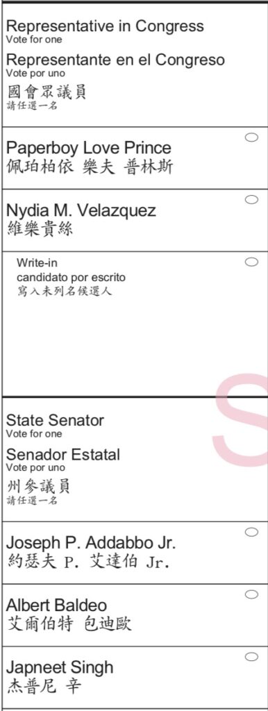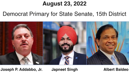 Your choices are Joseph P. Addabbo, Jr., Japneet Singh and Albert Baldeo.