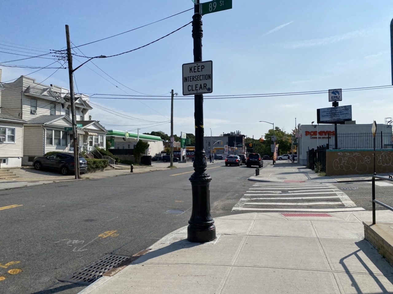 The more effective method not to block the box is for Department of Transportation to paint a white box on Myrtle Avenue allowing distance for cars to exit and enter 89 Street. It was painted before until the road was milled two years ago.