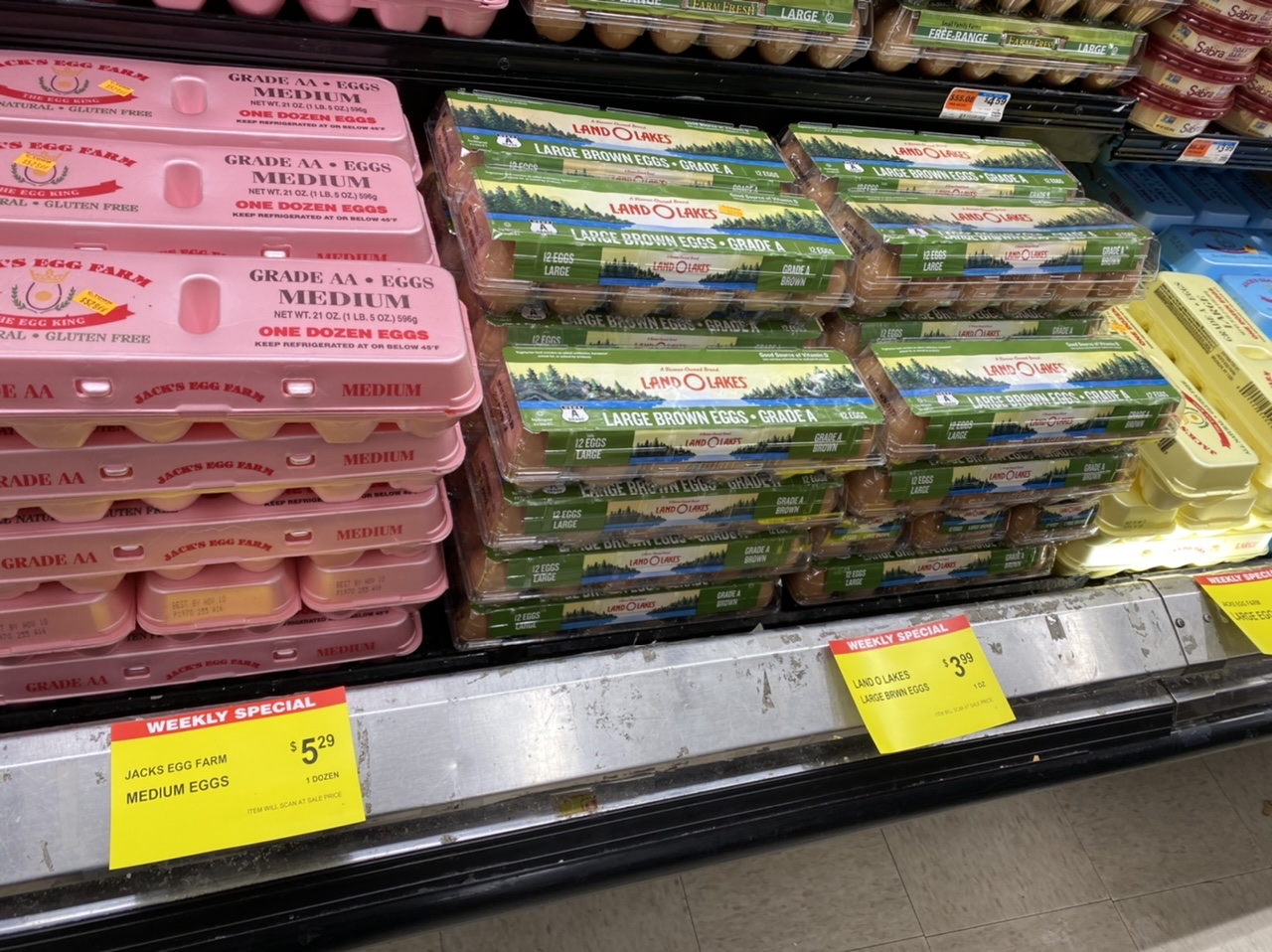 It was not too long ago when it was less than $2 per dozen! Price at Rego Fresh Marketplace at 63-76 Woodhaven Boulevard.