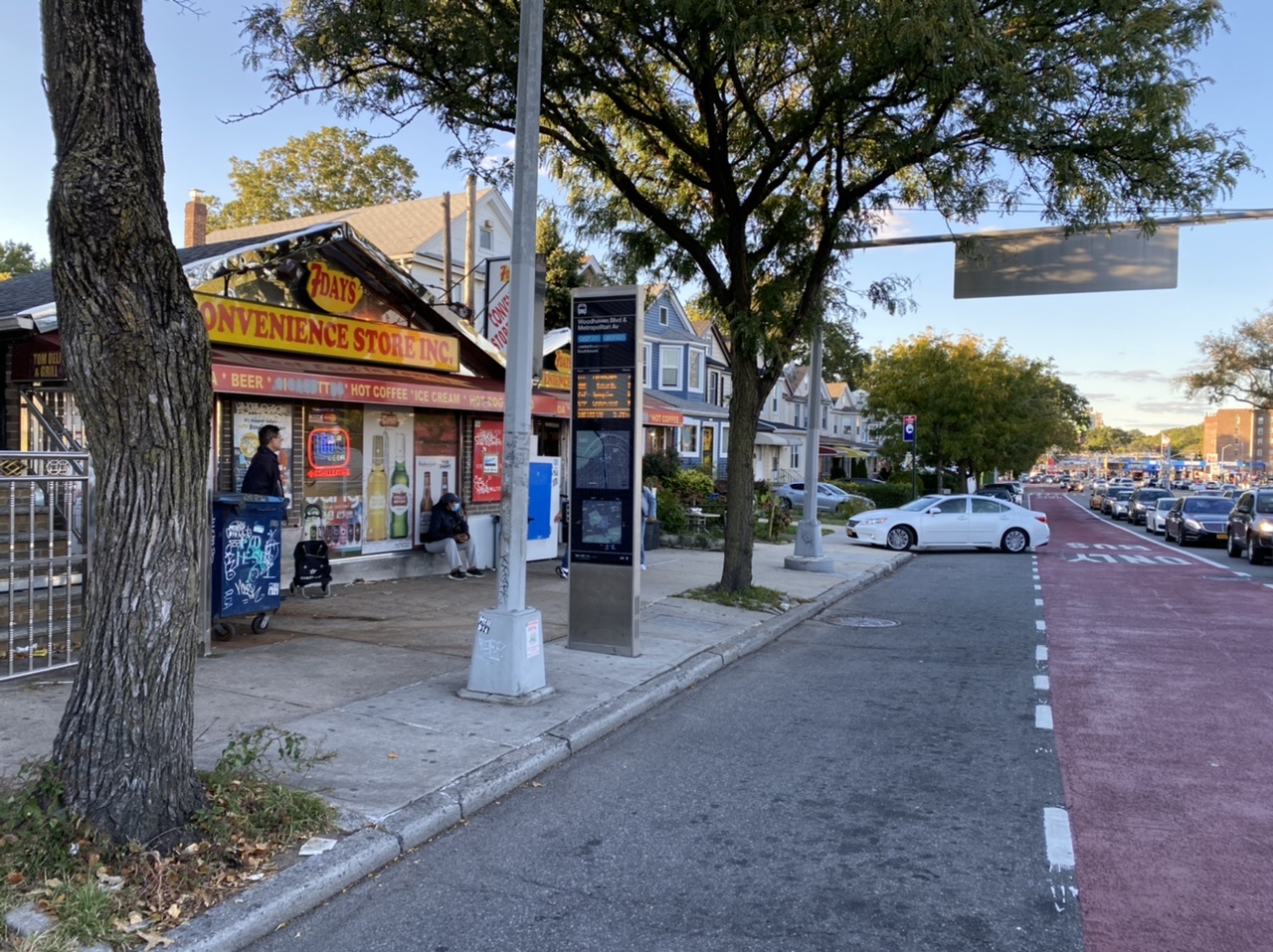 Residents complain that people would drink and smoke at the southbound SBS stop, but not necessarily taking the bus. A better location would be in front of the Chase Bank across the street.