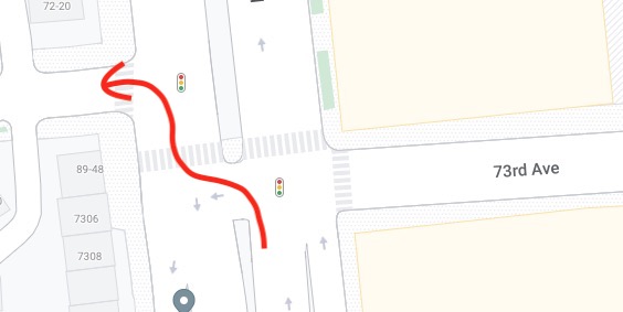 Cars southbound are not allowed to make a left turn into Home Depot where the traffic light is. Occassionally, northbound cars and trucks would make a left turn there to 73 Avenue going against the traffic for at about 50 feet before making the turn, shocking unsuspecting pedestrians.