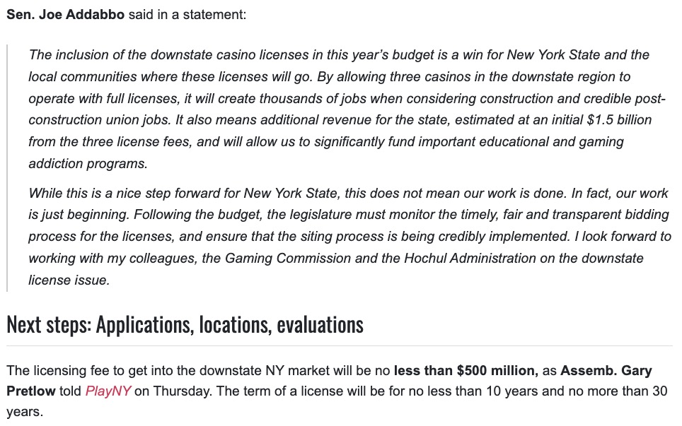 Just like how Bail Reform and Congestion Pricing was passed in FY20, 3 new casino licenses was buried in the FY23 budget bill.