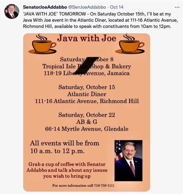 Early morning of October 16, burglars stole a white van, broke the door of Atlantic Ave Deli, and removed the in-store ATM. Van was retrieved in Brooklyn. Thieves have not been caught. Addabbo’s office has has commented. Post Views: 134 Post navigation Department of Buildings should be criminally liable! Dead tree in front of 104-47 91 Avenue