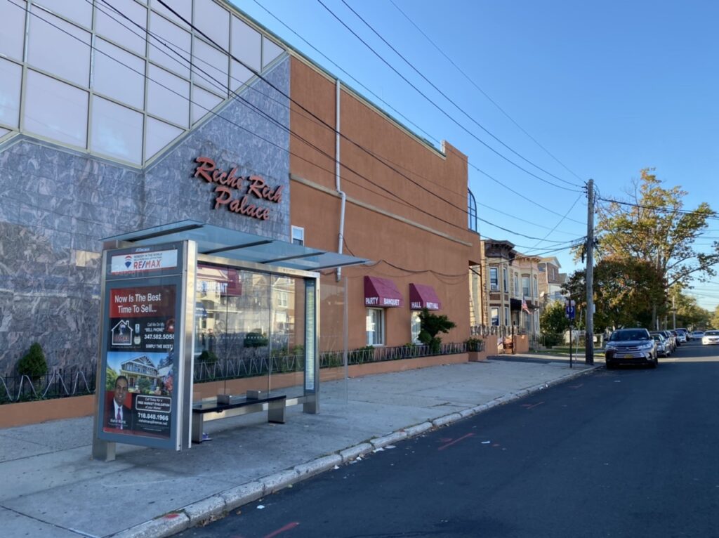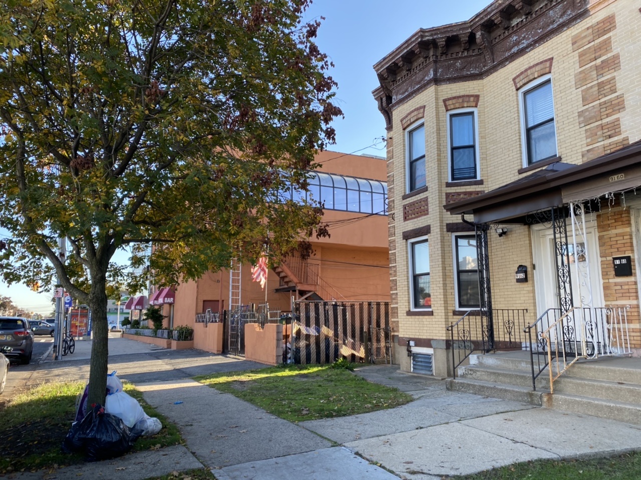 The catering hall piles its trash bins next to a residential building. This section of 110 Street is lower than the storm sewer drain, thus standing water after rain would smell.