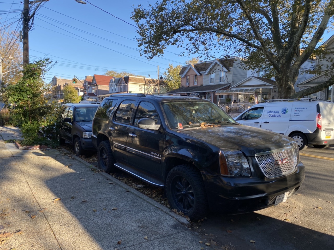 Two black cars parked for months on 103 Avenue.