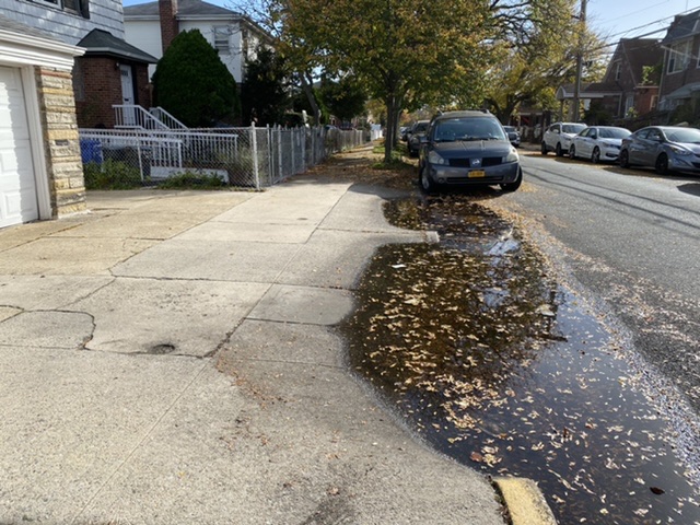 Rainwater puddles into a small lake between Glenmore and Pitkin Avenues after street was milled about 2 years ago. Similar problem was located at Belmont Avenue one block away.