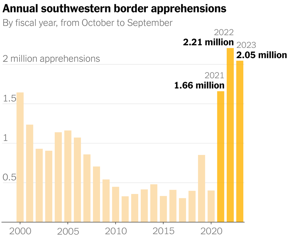 The number does not include apprehension from the northern border and at airports and other locations within the United States.