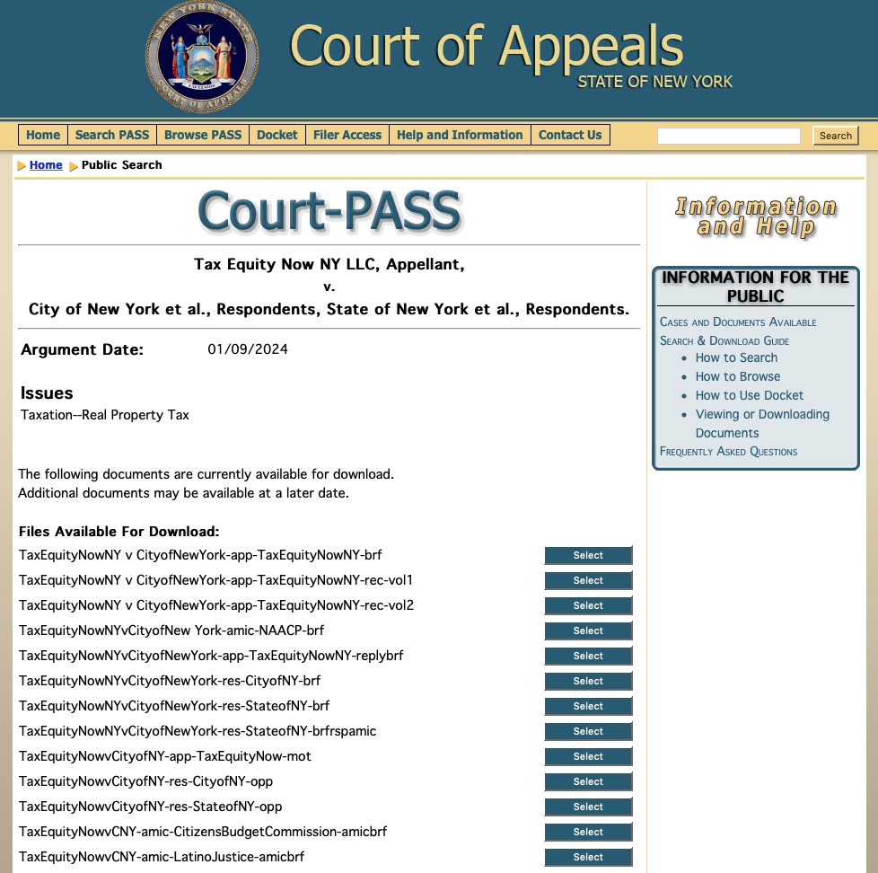 Tax Equity New NY LLC argument before State’s Court of Appeals on January 9, 2024.
